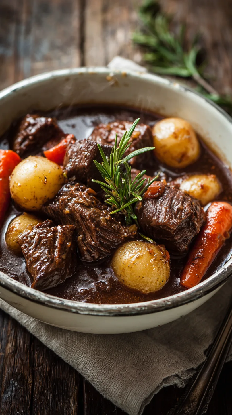 Thereโs a moment right before serving when you lift the lid and the stew looks like a small storm, bubbles rising, herbs floating, beef dark and soft. I take a taste straight from the ladle. Thatโs how you know itโs done. Not the timer. The taste.